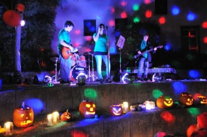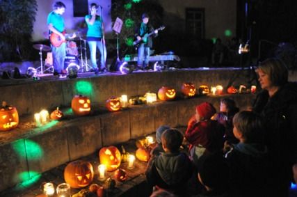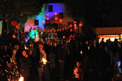 Am Dorfplatz wurden unterdessen zahlreiche Lichter und Kürbisgeister angezündet, ein Feuer entfacht und Suppe und Saitenwürstle erhitzt. Auf dem stimmungsvoll erleuchteten Dorfplatz spielte anschließend die Nachwuchsband „The Apples“ (Tiziana Drammis (Gesang), Johannes Hagmann (Gitarre), Niclas Lipp (Bass), Paul Henes (Schlagzeug) und Julian Schairer (Keyboard).